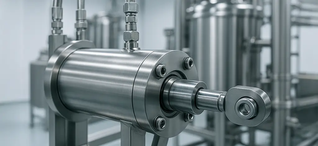 Cilindros hidráulicos fabricados de acero inoxidable para distintos usos, incluso para sala blanca.